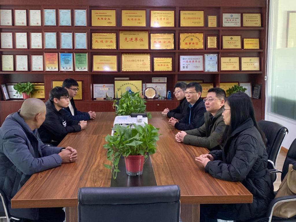 在三的利空调设备有限公司,学院一行在总经理王凯歌引导下参观了产业园区的最新建设成果,并看望慰问了我院在企业实习的能源与动力工程专业本科生。王院长仔细询问学生们实习情况及生活条件,勉励实习学生珍惜这最后一周的实习机会,认真听取企业领导导师的指导,遵守实习与安全纪律,不断思考,不断学习,努力提高工程实践能力,圆满顺利的完成本次实习任务。随后的座谈会上,王总首先对我院学生在实习期间的表现给予了高度肯定,他认为我院学生学习认真,责任心强,能够在短时间内独立担任各岗位主要工作任务,能够遵守行业规章制度,同时希望在今后继续保持良好合作势头,推动校企合作向纵深发展。王院长感谢企业的支持,并指出希望能够与实习单位加强配合、及时沟通,以校外实践基地建设促进校企合作进程,推动学校进一步优化符合区域行业发展需求的专业结构及教学模式,促进教育教学内容与区域产业的产教融合高质量发展,形成适应区域经济社会发展需要的人才培养体系,提高学生实践能力、职业素养和创新创业能力。