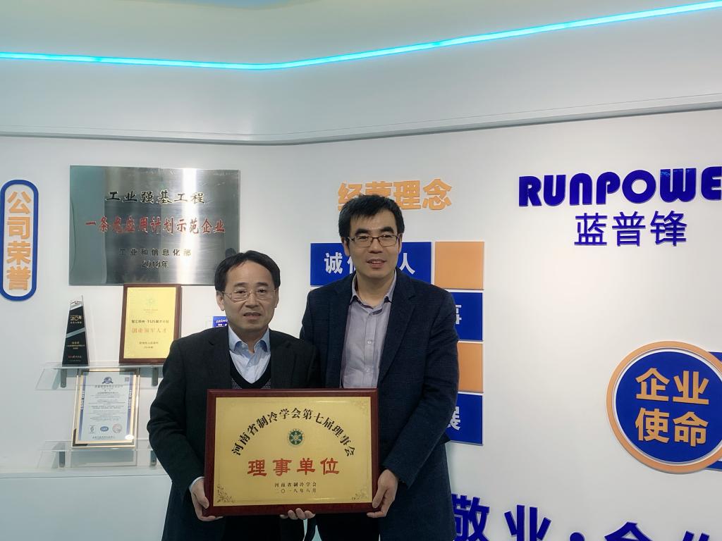 河南省制冷学会一行5人受到了郑州蓝普锋自动化技术有限公司徐昌荣董事长、窦辉副总经理的热情接待。窦总带领大家参观了公司产品和PLC等技术成果与应用,之后双方进行深入的技术交流。刘群生副秘书长、窦辉副总经理代表学会和企业分别简要介绍了双方的基本情况,徐昌荣董事长希望与学会在制冷空调系统的智能控制、远程监控等方面进行广泛深入的合作。吴学红教授表示非常愿意能够与公司进行深度技术合作,为河南省制冷行业的产品升级、技术国产化替代等系统优化服务更上一个台阶。最后,河南省制冷学会常务理事吴学红教授代表河南省制冷学会向郑州蓝普锋自动化技术有限公司徐昌荣董事长颁授河南省制冷学会理事单位铜牌并合影留念。