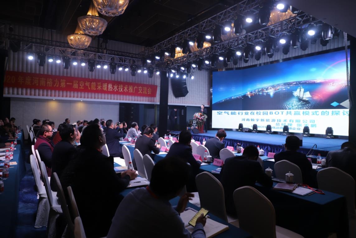 随后,河南瀚宇新能源总经理张天鹏为大家介绍了空气能在校园BOT共赢模式的探讨。