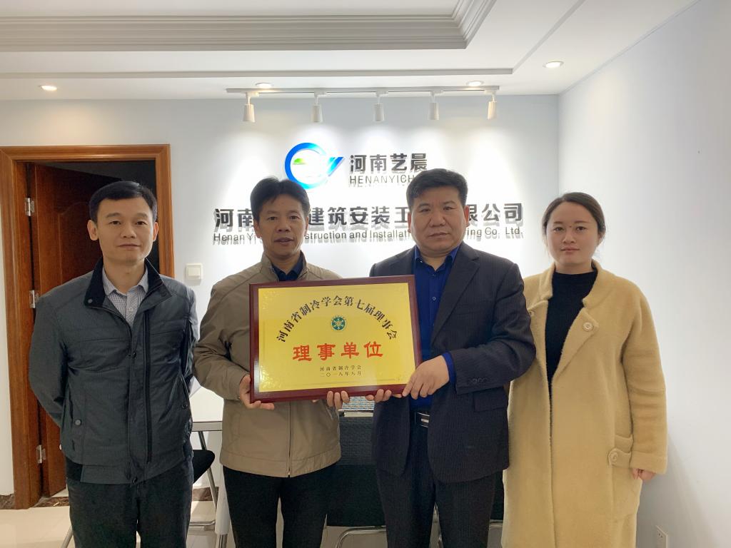 最后,隋继学秘书长向河南艺晨建筑安装工程有限公司颁授了河南省制冷学会理事单位铜牌并合影留念。