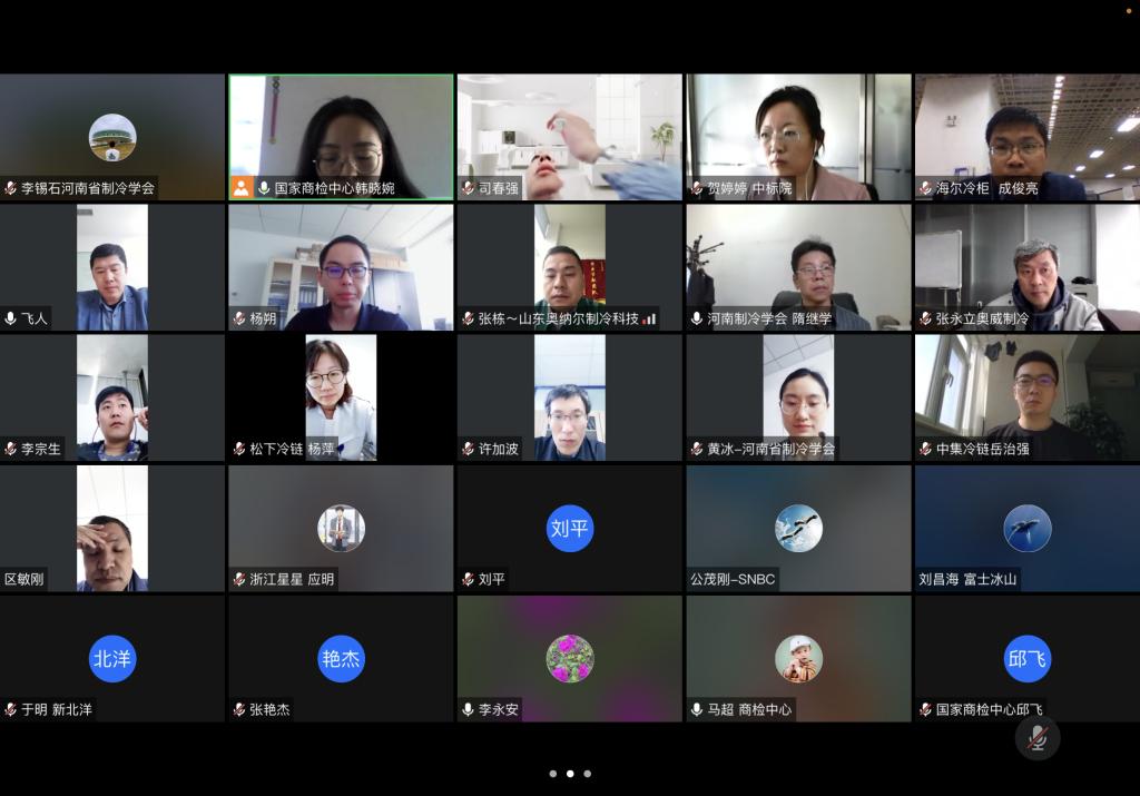 2021年4月23日上午,由中国节能协会绿色高效用能产品专业委员会、中国标准化研究院资环分院、企业标准“领跑者”联盟为指导,绿色冷链工作组、国家商用制冷设备制冷监督检验中心主办的《“领跑者”标准评价要求 冷风机》、《“领跑者”标准评价要求 装配式冷库》、《“领跑者”标准评价要求 自动售货机》和《“领跑者”标准评价要求 制冷集装箱》标准启动会在线上召开,中国标准化研究院资环分院、绿色冷链工作组、生产企业等40多位代表参加本次启动会,河南省制冷学会秘书长隋继学、副秘书长刘群生、办公室副主任李锡石、黄冰全程参与。