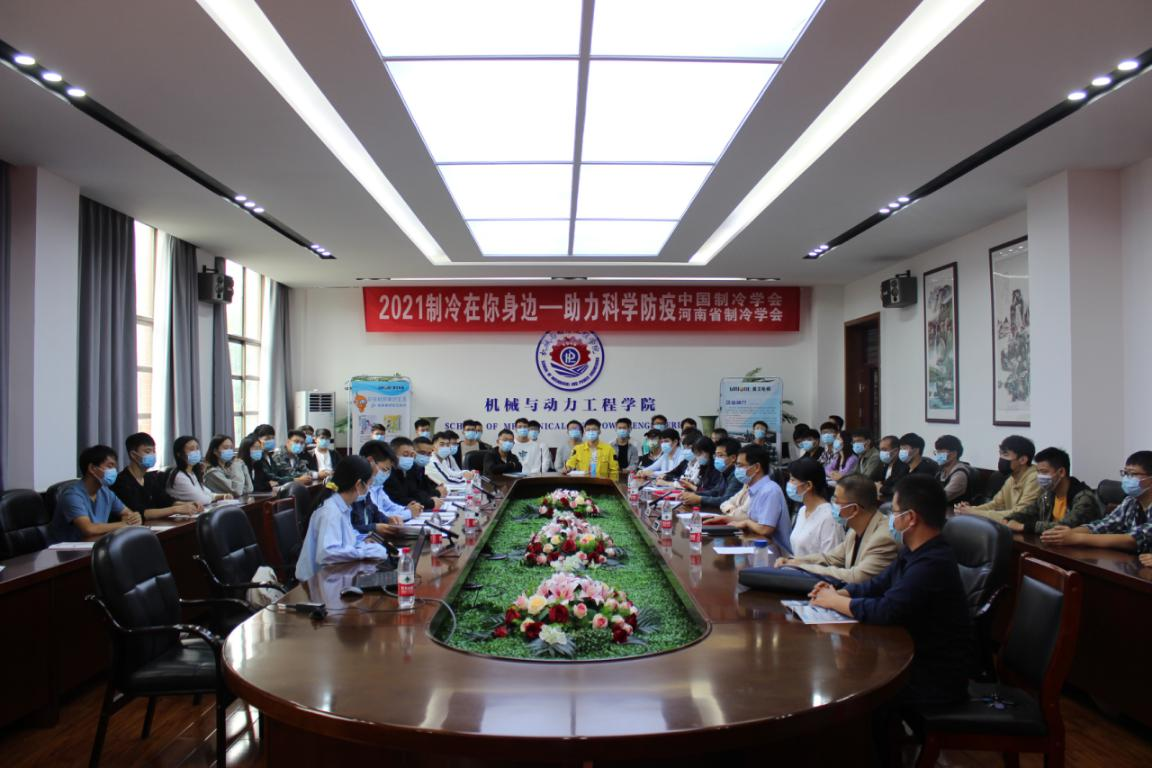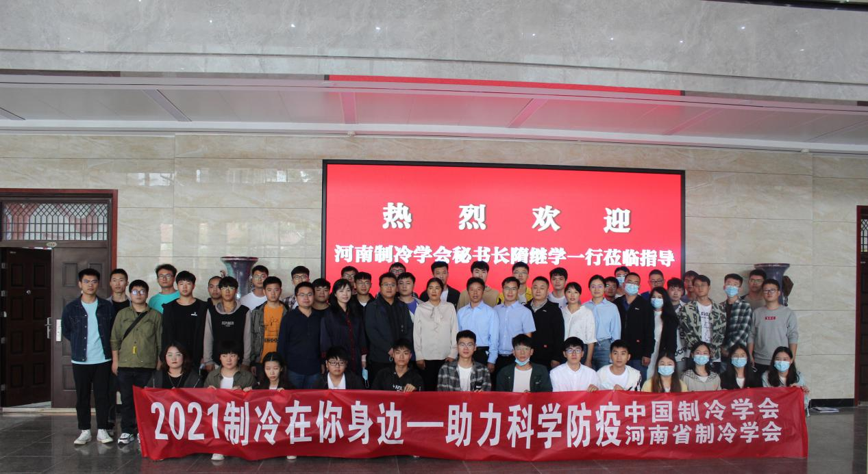 2021年9月27日上午,河南省制冷学会、河南理工大学和美的楼宇科技事业部联合组织开展了以“制冷在你身边 助力科学防疫”为主题的全国科普日活动。河南省制冷学会副理事长兼秘书长隋继学、河南理工大学机械学院党委副书记徐荣梅、河南理工大学机械学院能源与动力工程系党支部书记张安超、机械学院能源与动力工程系副主任梅艳阳、美的楼宇科技事业部河南产品中心市场部经理张栋梁、美的楼宇科技事业部河南产品中心电梯经理何长展、河南省制冷学会办公室副主任黄冰、河南省制冷学会办公室副主任李锡石、河南理工大学能源与动力工程专业团队博士王蕊蕊、郝晓茹、郑海坤以及40余名学生志愿者参加了科普活动启动仪式。