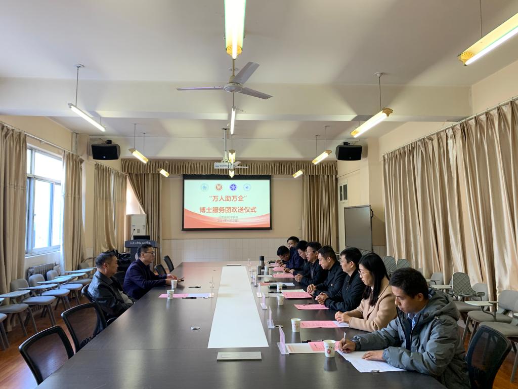 袁帅博士则代表博士服务团人员作表态发言。他表示自己到企业后一定对自己严格要求,坚决做到不忘初心、牢记使命,认真干好每件事,牢记各位领导的殷殷嘱托,珍惜这次难得的实践锻炼机会,向社会学习,向企业学习,向工人师傅们学习,尽自己最大能力,服务企业,回报社会,不辜负各位领导和老师们的期望。