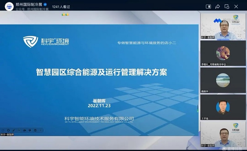 2022年11月23日,由河南省科学技术协会指导,河南省制冷学会、郑州国际制冷展组委会联合主办的“百会链千企”云课堂第六期—“智慧园区综合能源及运行管理方案”顺利开播。学会邀请科宇智能环境技术服务有限公司(河南省制冷学会副理事长单位)的崔朝晖技术总工为主讲嘉宾。河南省制冷学会副理事长、郑州市暖通空调节能学会理事长、郑州市建筑设计院暖通总工王华强主持。本次直播总观看量达到1953人次。