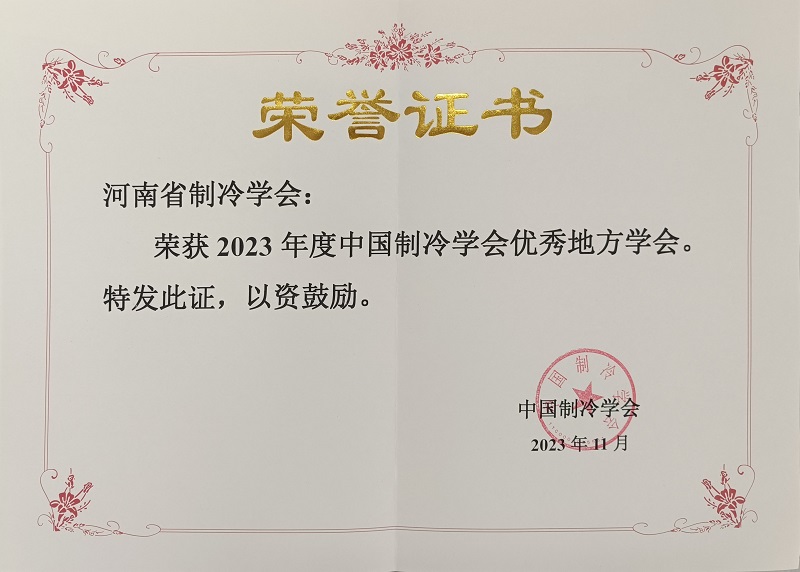 河南省制冷学会首次以总分第一名的成绩连续四次荣获“2023年度优秀地方学会”荣誉称号。中国制冷学会监事长金嘉玮先生、高级顾问孟庆国先生为优秀地方学会颁发了荣誉证书。