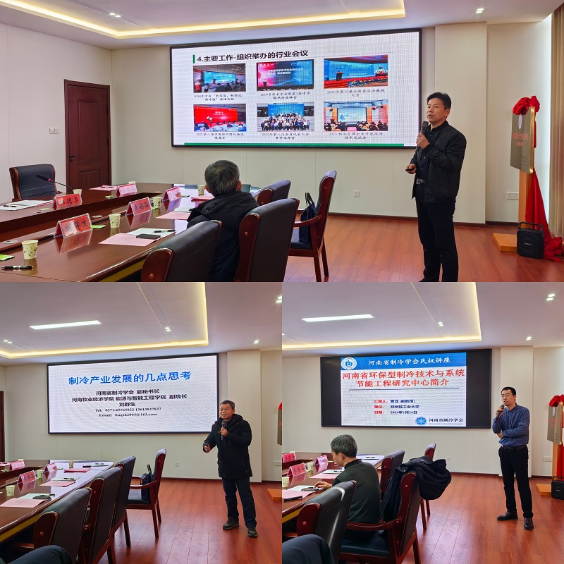 揭牌仪式后,隋继学、刘群生、曹泷为企业代表分别作“河南省制冷学会情况介绍”、“制冷产业发展的几点思考”、“制冷系统中换热器的强化换热研究进展”的主题报告,为企业代表答疑解惑,并就企业如何提升自主创新能力、进一步加强关键核心技术的攻关等问题展开交流。