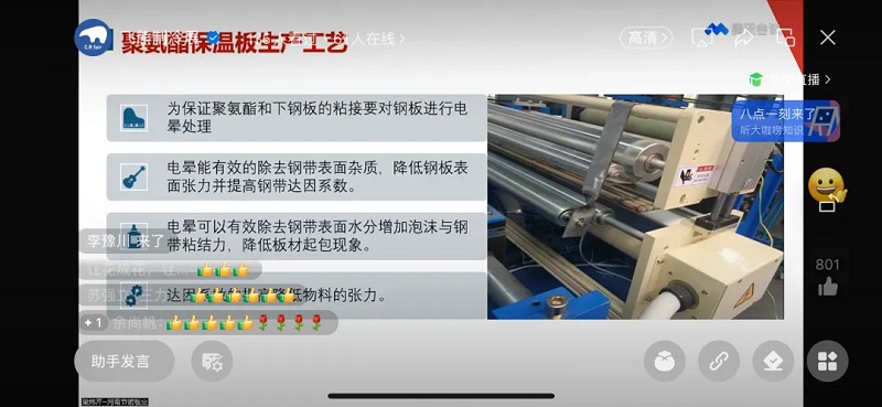 直播会上,梁炜芹总经理详细介绍了聚氨酯板的特性、冷库门与工业门的差异、聚氨酯板在冷库中的应用场景和安装技术规范等内容。随后,飞熊制冷展的业务经理王汉书介绍了即将于2024年5月8日至10日举办的第五届中国(郑州)国际制冷、冷链、空调、热泵及通风展览会的整体推进情况。在互动答疑环节,梁炜芹总经理为参与者解答了各种疑问,分享了自己从业27年来的宝贵经验。