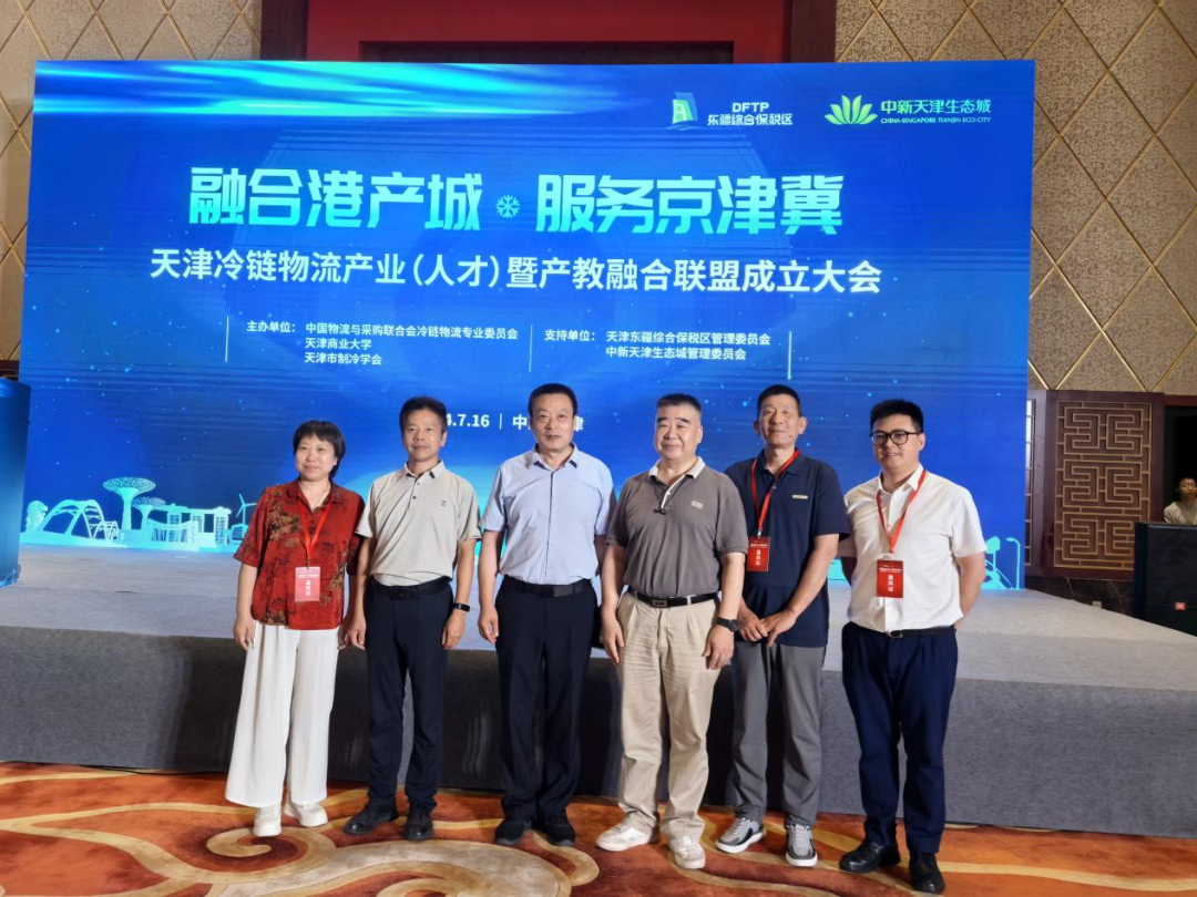 2024年7月16日,天津冷链物流产业(人才)暨产教融合联盟成立大会在中新天津生态城举办。大会由中国物流与采购联合会冷链物流专业委员会、天津商业大学、天津市制冷学会主办,天津东疆综合保税区管理委员会、中新天津生态城管理委员会支持,河北省制冷学会、河南省制冷学会、山西省制冷学会、湖南省制冷学会、内蒙古自治区制冷学会等单位协办,来自冷链物流企业、冷链食品企业、物流设备企业、科研院校的132家会员单位、200多名代表参会。