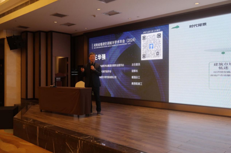 河南省土木建筑学会暖通空调专业委员会主任委员、郑州市建筑设计研究院有限公司暖通总工王华强先生做了《探讨暖通设计的高质量发展》主旨报告,