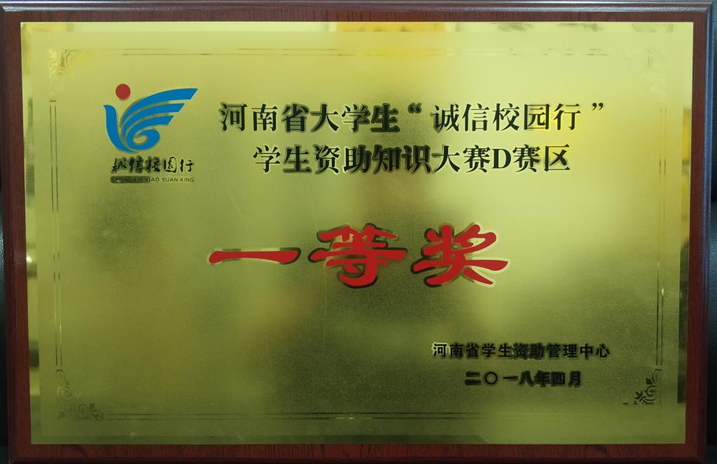 河南省大学生“诚信校园行”学生资助知识大赛D赛区一等奖