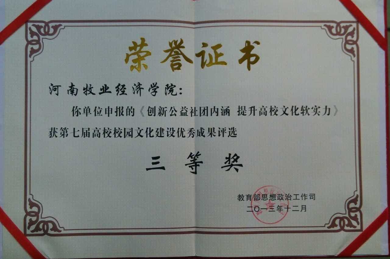 2013年公益文化 教育部第七届高校校园文化建设优秀奖
